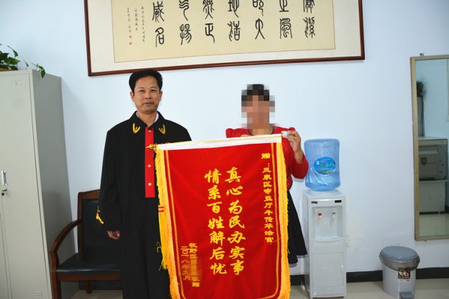 “多谢法官的细心说和,让俺气儿顺了家庭也和睦了。”日前,当事人姬某将一面印有“真心为民办实事,情系百姓解后忧”的锦旗送到新乡市凤泉区人民法院审监庭,并向法官连声道谢。